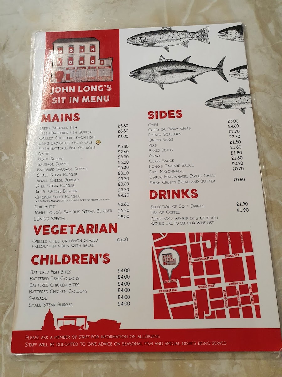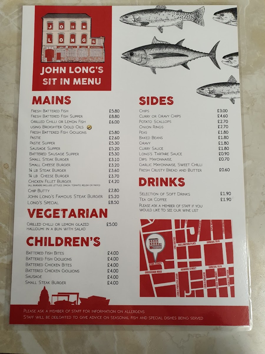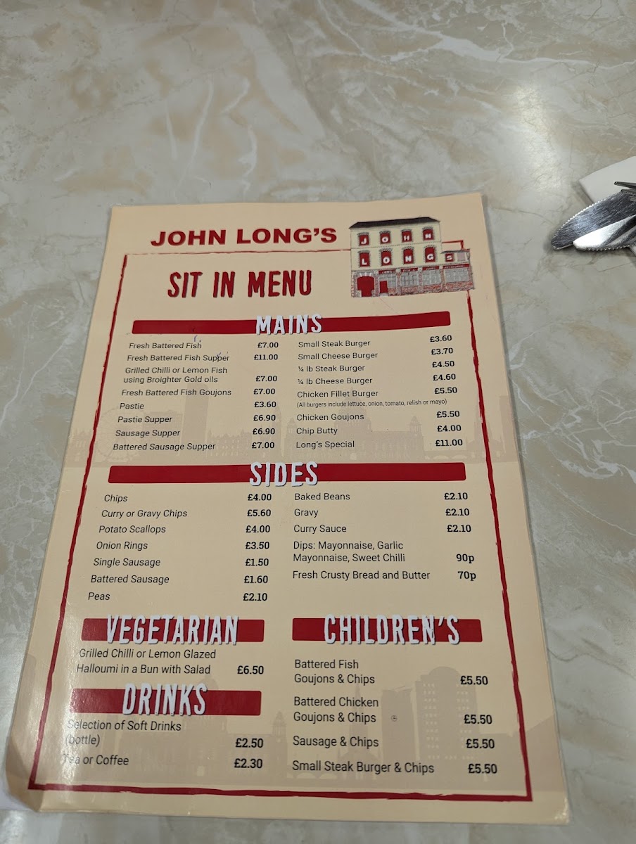 Discovering John Long’s is like stepping into a slice of Belfast history. Located at 39 Athol St, this diner offers a diverse menu that primarily highlights their iconic fish and chips. The Fresh Battered Fish Supper, topped with rave reviews from locals, showcases perfectly cooked haddock in a light, crispy batter—never oily, just flavorful.